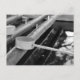 Una fotografía en blanco y negro de los cucharones y la fuente de agua, conocidos colectivamente como chozuya o temizuya, utilizados para purificar la boca y las manos antes de entrar en un santuario sintoísta.