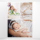 Foto Tarjeta de agradecimiento para enviarla a su familia e invitados que siguen el bautizo o bautismo de su pequeña. El diseño tiene una foto en la parte delantera con una cruz de oro y tu mensaje de agradecimiento con el nombre del bebé, la fecha y el lugar detrás. Mientras abres la tarjeta hay una foto retrato en la solapa y un collage de otras 5 fotos dentro. Las imágenes se muestran en formato vertical y horizontal. Si tiene algún problema con la colocación, intente recortar la foto para retrato/paisaje y volver a subir.