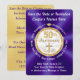 Hermosas Tarjetas de "Save the Date" personalizadas de color púrpura y dorado para aniversario de 50 años, o cambiar a invitaciones para aniversario de bodas de 50 años. TRANSFERIR este diseño a más de 1000 otras ideas de aniversario de bodas cristianas de 50 años. Dorado impresionante y diamante 50, Aniversario de oro y Cruz rodeada de brillo dorado falso y diamante de oro. Tan hermoso. Elija el tamaño del papel, el estilo de la esquina y el tipo de papel. Las plantillas de "Save the Date" para aniversario de bodas de 50 años son totalmente personalizables.