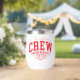 Christmas Crew Personalized Family Name Thermal Wine Tumbler features the text "Christmas Crew making memories together (add personalized name)" in modern red script typography. Perfect for Christmas gifts, family Christmas parties, family reunions and holiday celebrations and more. Created by Evco Studio www.zazzle.com/store/evcostudio