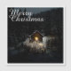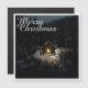 The card shows an atmospheric, wintry scene with a small, illuminated wooden hut in the middle of a snow-covered forest. The warm light source inside creates a beautiful contrast to the dark, peaceful surroundings. The elegant "Merry Christmas" lettering in white gives the motif a festive touch. 🎄✨