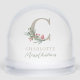 Personalized holiday snow globe home decor and gift featuring festive red berries and foliage with personalized initial, name, and photo.