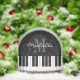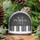 Christmas photo snow globe for piano player. Cute personalized gift idea for the Holidays. Make one for piano teacher, pianist, musicians, friends, family etc. Upload your own picture or image on the back. Elegant gift with black and white piano keys.