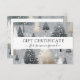 Moderno, Elegante, Árboles de Navidad -Gris-Beige-Plata-Patrón, Salón, Negocios, Certificado de Regalo. ¡Celebra la temporada de las donaciones con este encantador certificado de regalo con temática de árbol de Navidad! Perfecto para extender la alegría de las vacaciones a amigos, familia y clientes, este certificado de regalo personalizado captura la magia del invierno con su hermoso diseño de nevadas verde y festivo. Ideal para pequeñas empresas, spas, centros de bienestar, o cualquier negocio que busque ofrecer una opción de regalo de vacaciones. Añada un toque de sentidos a sus regalos de vacaciones, permitiendo a los clientes dar una experiencia o un producto a través de un certificado de regalo profesional y muy bien diseñado. Este certificado festivo traerá alegría a cualquiera que lo reciba y seguro que difundirá alegría por las vacaciones!