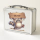 Esta divertida caja de almuerzo personalizada para los niños incluye un lindo mapache regordete con una enorme señal de nombre de madera. Con una cola esponjosa que se abre para equilibrar, y un pie levantado a mitad de camino, este adorable diseño es perfecto para la personalización.