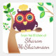 Un chef de búho super lindo ‘de mi cocina’, ‘de la cocina de’ pegatinas de etiquetas de regalo o de comida o etiquetas de horneado para panadería, panadería, cocinero de panadería o pastelería, clases de cocina, chef personal, catering o restauración, u otra comida gourmet o negocio culinario. Owl lleva puesto el gorra del chef y se sienta en un árbol con una rama de cuchara de madera.