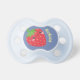 La fresa adorable del dibujo animado con la cara sonriente en azul personalizó el pacificador del bebé.