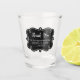 Trate a sus huéspedes del boda a un vaso de medida especial para recordarlas su día especial. Una placa negra decorativa tiene texto de encargo blanco está lista para personalizar para su boda.