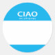 Etiqueta de nombre de saludo italiano Ciao Mi Chiamo o insignia. Pegatina circular con la tradicional frase "Hola mi nombre es" en azul en italiano.