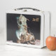 Caja de almuerzo personalizada con fotografías que muestran una cigarra saliendo de su caparazón por un lado, y surgió por completo del otro lado.
