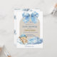 Celebra la llegada de un bebé con esta suave y soñadora invitación a la ducha de bebé, que incluye un oso de peluche adornado con nubes esponjosas bajo una hermosa proa azul. Con una tipografía elegante y tonos pastel serenos, este diseño aporta calidez, dulzura y un toque de alegría por el cielo a su celebración.