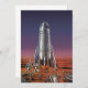 Ilustración vintage de ciencia ficción futurista de viaje y transporte con imagen de un cohete. Astronautas corriendo hacia su nave espacial escapando de alienígenas con forma de escarabajo en un planeta extranjero intentando regresar a la tierra. Un clásico diseño retro de ciencia ficción de los años 50 del futuro.