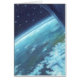 Ilustracion vintage, espacio exterior futurista y planetas. Imagen de ciencia ficción con una vista del planeta tierra desde la ventana de una nave espacial de cohetes. Se pueden ver nubes girando sobre la tierra y el océano azul. En el horizonte está el cielo nocturno con estrellas brillantes. Un clásico diseño de historietas de ciencia ficción de los años 50.