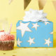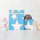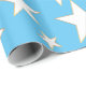 Estrellas dispersas, grandes y pequeñas, blancas con un fino borde dorado, sobre un fondo liso. Una buena elección para casi cualquier ocasión.