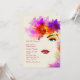 Una invitación imponente que ofrece una vista parcial de la cara de una mujer rodeada con las porciones de deslumbramiento, flores coloridas.
