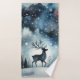 Un ciervo elegante se yergue bajo un cielo invernal brillante, enmarcado por pinos cubiertos de nieve y delicados árboles desnudos. Los azules profundos de medianoche se desvanecen en blancos helados, mientras que estrellas y copos de nieve se dispersan como joyas por los cielos. Esta escena onírica del bosque captura la silenciosa maravilla de una noche nevada, mezclando el calor acogedor con la magia celestial. Perfecta para evocar la quietud del invierno y la belleza del ritmo de la naturaleza. Arte generado por IA.