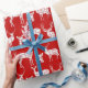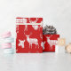 Ciervos rústicos blancos y siluetas principales de los ciervos en el papel de embalaje rojo.