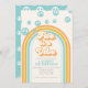 Cinco es un Ambiente Invitación de cumpleaños inspirada en el estilo retro para 5 años con fuentes y colores al estilo de los 70.