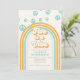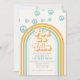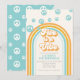 Invitación de cumpleaños inspirada en el retro para el quinto cumpleaños con fuentes y colores al estilo de los 70.