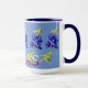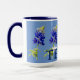 Diseño de taza único con flores de Bluebonnet de Texas sobre un fondo azul, con Texas impreso con audacia en el fondo. La flor Bluebonnet es la flor del estado de Texas. En marzo y abril, estas hermosas flores florecen en los campos y medios de las autopistas.