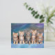 Cinco gatitos de tabby, rojo en una postal de fila