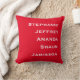 Esta sencilla y minimalista almohada de tiro cuadrado, con espacio para cinco nombres, es un maravilloso regalo para un nuevo hogar o fiesta de limpieza - ¡o para usted, por supuesto! Gran regalo para los padres o abuelos nuevos. El blanco y el rojo son claros, pero es fácil cambiar de color. La espalda es rojo sólido. Todos los derechos reservados © 2024 Alan & Marcia Socolik
