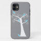 Cinco adorables pájaros azules abstractos cuelgan en un árbol blanco contra un fondo gris en un estuche de apenas un teléfono de portada del Funda del Funda-mate