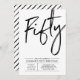 Celebra tu día especial con esta sencilla y elegante invitación a la fiesta de cumpleaños número 50. Este diseño presenta un guión de broche "Fifty" con un diseño limpio combinado en color blanco y negro. Más diseños disponibles en mi tienda BaraBomDesign.