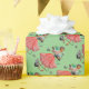 Una ventilado mujer de 50 años vestida con un vestido de tira de caramelos con su perro.