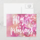 NewParkLane - Tarjeta postal moderna en blanco y negro, con la divertida frase 'Cincuenta y fabuloso' en una tipografía de letra cursiva de moda, sobre un fondo glamuroso de brillo rosa.