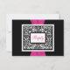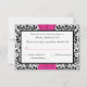 Esta tarjeta de respuesta de damasco negro y blanco tiene una cinta ROSA FUCSIA IMPRESA. Coincide con la invitación de boda que se muestra a continuación. Si necesita otros artículos coincidentes, o le gustaría en otra combinación de colores, por favor envíe un correo electrónico a niteowlstudio@gmail.com con su solicitud.