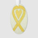 La cinta de la sensibilización del corazón adorno de arte pendant de vacaciones muestra la pintura de un corazón de cinta amarilla de la conciencia. El arte de la cinta amarilla de concientización se puede personalizar con mensajes personalizados para crear una gran conciencia de la causa ornamentos o pendantes para recaudadores de fondos, Navidades de concientización o regalos de vacaciones, o mercadería de cinta de concientización otros eventos o ocasiones de causa especial. El color de la cinta amarilla de sensibilización muestra apoyo para el cáncer óseo o el osteosarcoma, apoyo a nuestro regreso de las tropas/fuerzas armadas, MIA/POW, prevención del suicidio, endometriosis, cáncer de vejiga, padres adoptivos, aceptación craniofacial y spina bifida más.