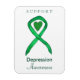 La depresión utiliza una cinta verde para apoyar la concienciación sobre su causa. El imán personalizado presenta un imán de arte cardíaco de cinta de conciencia verde con el mensaje "Apoyo a la toma de conciencia sobre la depresión". El arte de la cinta de conciencia verde se puede personalizar con mensajes personalizados para hacer imanes de mercadería de gran causa para recaudadores de fondos, regalos de conciencia u otros eventos o ocasiones de causa especial.
