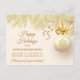 Muestre a sus clientes y/o clientes cuánto aprecia su negocio con esta elegante tarjeta postal de agradecimiento de vacaciones. La parte delantera tiene un borde superior bonito de ramas de pino doradas con cinta dorada, y una bombilla de árbol blanca decorada con un copo de nieve dorado y lazo dorado. Su mensaje está en 5 campos de texto dorado; ¡haz que diga lo que quieras! Si necesita agregar texto adicional al reverso, elija personalizar.