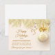 Muestre a sus clientes y/o clientes cuánto aprecia su negocio con esta elegante tarjeta postal de agradecimiento de las fiestas. La parte delantera tiene un borde superior bonito de ramas de pino doradas con cinta dorada, y una bombilla de árbol blanca decorada con un copo de nieve dorado y lazo dorado. Su mensaje está en 5 campos de texto dorado; ¡haz que diga lo que quieras! Si necesita agregar texto adicional al reverso, elija personalizar.