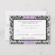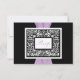 Esta tarjeta de respuesta de damasco negro y blanco tiene una cinta de lavanda púrpura IMPRIMIR sobre ella que coincide con la invitación de boda que se muestra a continuación. Si necesita otros artículos que coincidan, o le gustaría en otra combinación de colores, por favor envíe un correo electrónico a niteowlstudio@gmail.com con su solicitud.