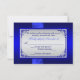 Esta elegante y romántica tarjeta de respuesta de boda en azul cobalto y gris plateado floral tiene una cinta y lazo IMPRIMIDOS con un par de joyas de diamante IMPRIMIDAS y corazones unidos con brillo FALSO que coinciden con la invitación de boda que se muestra a continuación. ****POR FAVOR TENGA EN CUENTA que no hay imágenes en relieve o grabadas en esta tarjeta. TAMBIÉN, Zazzle NO editará nada para corregir errores tipográficos o alineación o espaciado, así que por favor asegúrese de que su texto sea exactamente como lo desea. No veré su invitación, así que si necesita ayuda con la personalización de mi diseño, por favor envíeme un correo electrónico ANTES de realizar su pedido. Todo se imprime plano. También podría ser utilizado para otros eventos especiales, como un aniversario o compromiso. El texto y las opciones de papel son totalmente personalizables, pero NO sugiero cambiar el papel a plateado o dorado metálico, ya que son muy oscuros y alterarán la legibilidad y el aspecto del diseño. El papel delicado es MUY delgado y semi-transparente. Otros