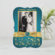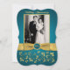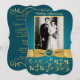 Esta elegante invitación de aniversario de bodas de sesenta años con flores en azul verde y dorado con volutas tiene una cinta y un lazo dorados IMPRESOS con un medallón de apariencia grabada FAUX impreso en azul y dorado. Tiene un área de plantilla para que cargues tu propia foto digital. Puedes eliminar el texto estilizado en cursiva "Aniversario de bodas" o "60º". Todo el texto es personalizable, y también las opciones de papel. ****TEN EN CUENTA que el papel dorado es un oro muy oscuro y bronceado y alterará los colores del diseño (convertirá la foto en dorada, etc.), así que NO sugiero usar ese papel. El papel de fieltro también alterará ligeramente el color de tu foto. Esta invitación está diseñada para ajustarse a la tarjeta de tamaño 5x7 con forma curva. Si cambias a otro tamaño/forma, el diseño ya no se ajustará correctamente, así que si deseas un tamaño diferente, por favor contáctame para que pueda rediseñarlo para ti. TAMBIÉN, si cambias las fuentes o tamaños de fuente, es posible que tu texto ya no se ajuste correctamente. Zazzle no editará nada por errores tipográficos, alineación o cualquier otra cosa, y yo no veré tu invitación. Todo se imprimirá tal como aparece en tu monitor. Si necesitas ayuda con la invitación, por favor contáctame ANTES de hacer tu pedido. Esta invitación está diseñada para ajust