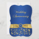 Esta elegante invitación de aniversario de bodas de sesenta años con flores de color azul zafiro y dorado con volutas tiene una cinta y un lazo dorados IMPRESOS con un medallón de color azul marino y dorado con apariencia de grabado FAUX IMPRESO. Puede eliminar el texto estilizado en cursiva "Aniversario de bodas" o "60º". Todo el texto es personalizable, y también las opciones de papel. ***TENGA EN CUENTA que para obtener los mejores resultados impresos para los elementos "dorados", sugiero el papel con brillo perla. Los papeles de acabado mate no tendrán brillo y pueden hacer que las cosas se vean más opacas de lo que aparecen en línea. Esta invitación está diseñada para ajustarse a la tarjeta de tamaño 5x7. Si cambia a otro tamaño o forma, el diseño ya no se ajustará correctamente, así que si desea un tamaño diferente, por favor contácteme para que pueda rediseñarlo para usted. TAMBIÉN, si cambia las fuentes o tamaños de fuente, su texto puede no ajustarse correctamente. Zazzle no editará nada para errores tipográficos, alineación o cualquier otra cosa, y yo no veré su invitación. Todo se imprimirá tal como aparece en su monitor. Si necesita ayuda con
