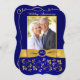 Esta elegante invitación de aniversario de bodas de 50 años con flores en azul real y dorado con volutas tiene una cinta dorada IMPRIMIR y una medalla azul y dorada con apariencia de grabado FAUX IMPRIMIR. Tiene un área de plantilla para que cargues tu propia foto digital. Puedes eliminar el texto estilizado en cursiva "Aniversario de bodas" o "50º". Todo el texto es personalizable, y también lo son las opciones de papel. ****TEN EN CUENTA que si cambias a papel metálico dorado, es un dorado muy oscuro y broncíneo y alterará los colores del diseño (convertirá la foto en dorada, etc.), así que NO sugiero usar ese papel. El papel de fieltro también alterará ligeramente el color de tu foto. TAMBIÉN, si cambias las fuentes o tamaños de fuente, es posible que tu texto ya no quepa correctamente. Zazzle no editará nada por errores tipográficos, alineación o cualquier otra cosa, y yo no veré tu invitación. Todo se imprimirá tal como aparece en tu monitor. Si necesitas ayuda con la invitación, por favor contáctame ANTES de pedirla. Esta invitación está diseñada para ajustarse al tamaño 5x7 con forma de tarjeta CURVA. Si cambias a otro tamaño/forma, el diseño ya no se ajustará correctamente, así que si deseas un tamaño diferente, por favor contáctame