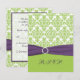 Esta tarjeta de respuesta de damasco verde lima y lapis púrpura coincide con la invitación de boda que se muestra a continuación.