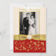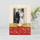 Esta elegante invitación de aniversario de bodas de 50 años con flores rojas, marfil y doradas con volutas tiene una cinta dorada IMPRIMIDA y una medalla de marfil y dorado con apariencia de grabado FALSO impresa. Tiene un área de plantilla para que cargues tu propia foto digital. Puedes eliminar el texto estilizado en cursiva "Aniversario de bodas" o "50º". Todo el texto es personalizable, y también las opciones de papel. ****TEN EN CUENTA que el papel dorado es un dorado muy oscuro y broncíneo y alterará los colores del diseño (convertirá la foto en dorada, etc.), así que NO sugiero usar ese papel. TAMBIÉN, si cambias las fuentes o tamaños de fuente, es posible que el texto no se ajuste correctamente. Zazzle no editará nada por errores tipográficos, alineación o cualquier otra cosa, y yo no veré tu invitación. Todo se imprimirá tal como aparece en tu monitor. Si necesitas ayuda con la invitación, por favor contáctame ANTES de hacer el pedido. Esta invitación está diseñada para ajustarse a la tarjeta de tamaño 5x7. Si cambias a otro tamaño, el diseño ya no se ajustará correctamente, así que si deseas un tamaño diferente, por favor contáctame