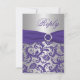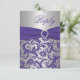 Esta tarjeta de respuesta de damasco floral plateado gris y morado con aspecto de relieve FAUX tiene una CINTA IMPRESA con un broche de joyas de cristal que coincide con la invitación de boda que se muestra a continuación. El tipo de papel y todo el texto es totalmente personalizable. Si necesita otros artículos coincidentes, o le gustaría esta combinación de colores diferente, por favor envíe un correo electrónico a niteowlstudio@gmail.com.