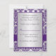 Esta tarjeta de respuesta de damasco púrpura y plata coincide con la invitación de boda y otros artículos que se muestran a continuación. **Tenga en cuenta que la cinta y las joyas son imágenes y no son reales. El texto y el papel son totalmente personalizables. Si necesita otros artículos coincidentes, por favor envíeme su solicitud a niteowlstudio@gmail.com.