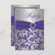 Esta tarjeta de respuesta de damasco floral gris plateado y púrpura con aspecto de FAUX estampado tiene una CINTA IMPRESA con un broche de joyas de cristal que coincide con la invitación de boda que se muestra a continuación. El tipo de papel y todo el texto es totalmente personalizable. Si necesita otros artículos coincidentes, o le gustaría esto en una combinación de colores diferente, por favor envíe un correo electrónico a niteowlstudio@gmail.com.