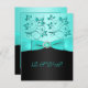 Esta tarjeta de respuesta floral azul acuático y negro tiene una cinta IMPRESA azul acuático y un broche de joyas de aguamarina y diamantes IMPRESO que coincide con la invitación de boda que se muestra a continuación. Si necesita otros artículos coincidentes en este diseño, por favor envíe un correo electrónico a niteowlstudio@gmail.com.
