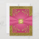 Esta tarjeta de respuesta floral rosa y dorada tiene una cinta rosa intenso IMPRESA, y vides florales doradas, un medallón con aspecto de GABINETE IMPRESA, todo colocado sobre un fondo con textura de guijarros. ***POR FAVOR no seleccione el papel metálico en plata o dorado, ya que son papeles oscuros que realmente alterarán los colores del diseño. Para un buen brillo en el diseño dorado existente, use el papel de hielo metálico para obtener los mejores resultados. TAMBIÉN, esta tarjeta ha sido diseñada para ajustarse al tamaño de tarjeta que tiene ahora. Si elige otro tamaño, el diseño no tendrá el tamaño correcto y el diseño tendrá defectos. Si desea un tamaño diferente, por favor envíeme un correo electrónico con su solicitud. Esta tarjeta de respuesta coincide con la invitación de boda que se muestra a continuación. Si necesita algún elemento coincidente en este diseño,