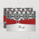 Esta tarjeta de respuesta de boda de damasco gris negro y plateado tiene una cinta ROJA impresa y un broche de diamantes impresos que coincide con las dos invitaciones de boda que se muestran a continuación. ****Tenga en cuenta que algunos de los papeles alterarán el color del diseño, así que tenga cuidado al seleccionar el papel. NO recomiendo usar el papel plateado metálico, dorado o champán, o el papel de fieltro para esta invitación. El papel metálico plateado oscurecerá mucho el diseño, ya que es mucho más oscuro en persona que lo que se muestra aquí. Además, Zazzle no editará nada para errores tipográficos o desalineaciones, y yo no veré su tarjeta en absoluto. Todo se imprimirá tal como aparece en su monitor, así que si necesita que se cambie algo, por favor contácteme ANTES de realizar su pedido y estaré encantado de ayudar. Si desea un tamaño de tarjeta diferente, por favor NO lo cambie usted mismo. Este diseño fue creado como un tamaño de 3,5 "x 5", por lo que cambiarlo a otro tamaño alterará la proporción del diseño y partes del mismo se cortarán durante la impresión. Sería perfecto para una boda con tema rojo, plateado y negro, una boda de otoño o una boda de invierno. El texto y el tipo de papel son personalizables. Si necesita otros artículos que coincidan, por