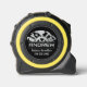 El diseño de medida de cinta personalizado para un hombre de mano, contratista general o mecánico presenta un diseño de fondo negro y herramientas plateadas con llave, perforación, martillo y sierra enmarcando un nombre que puede ser personalizado. También incluye texto para un nombre comercial, número de teléfono u otra información de contacto.