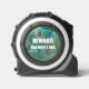 Una útil herramienta de medición de cinta para todos los proyectos de casa que incluye una imagen de una piedra mineral crisocólica azul junto con una advertencia que dice: "¡OCUPEN! HOMBRE CON HERRAMIENTA".